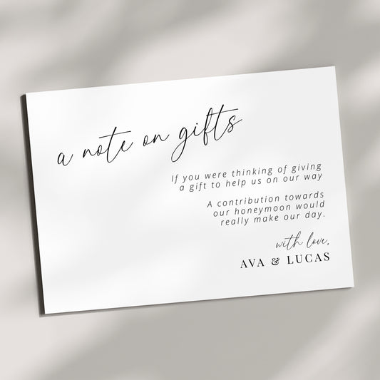 A Note On Gifts Honeymoon Fund Enclosure Card
