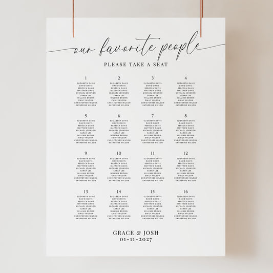 Our Favorite People Seating Chart Sign for 22 Tables Template