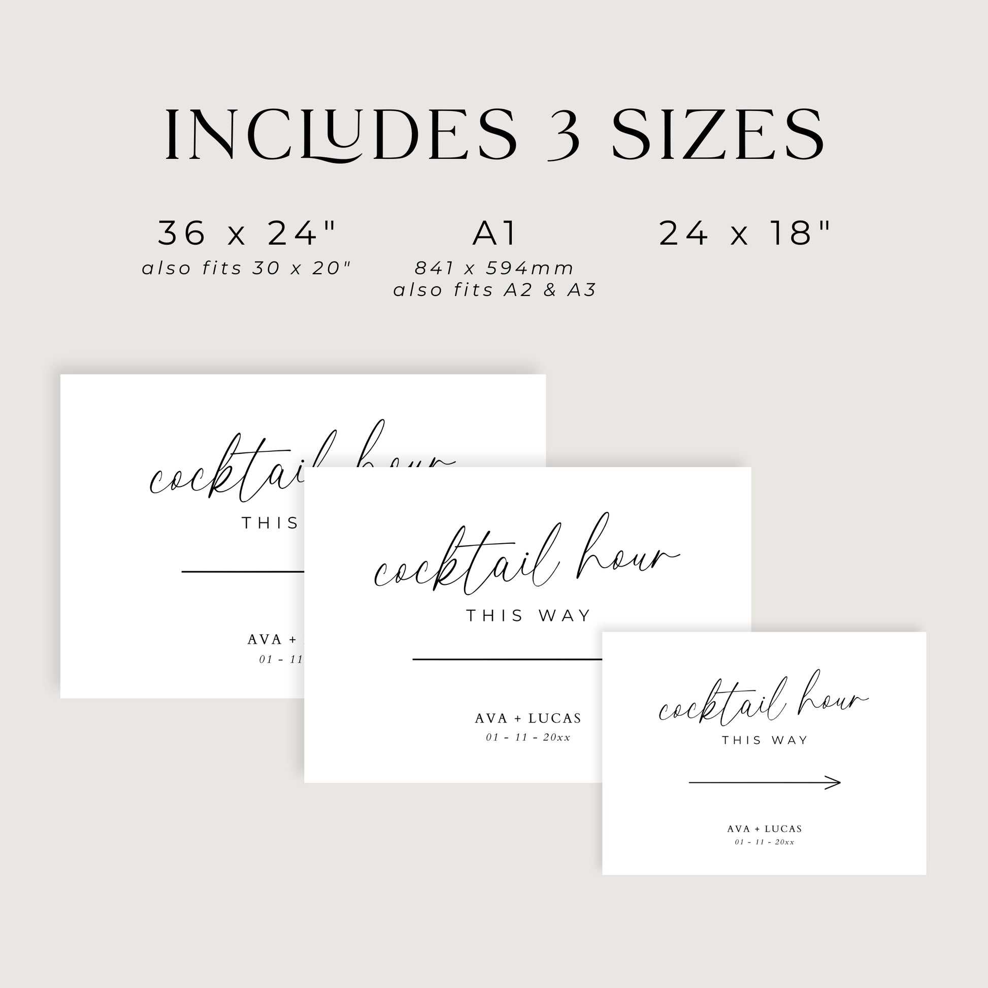 Guide guests to your celebration with our Cocktail Hour This Way Sign, perfect for weddings and receptions with multiple areas. This minimalist design features a bold arrow for easy direction while keeping your signage clean and modern.